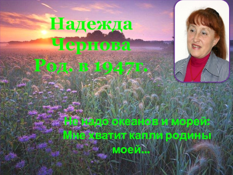 Слайд 13 В природе все наполнено для Черновой высокого смысла и тайны.