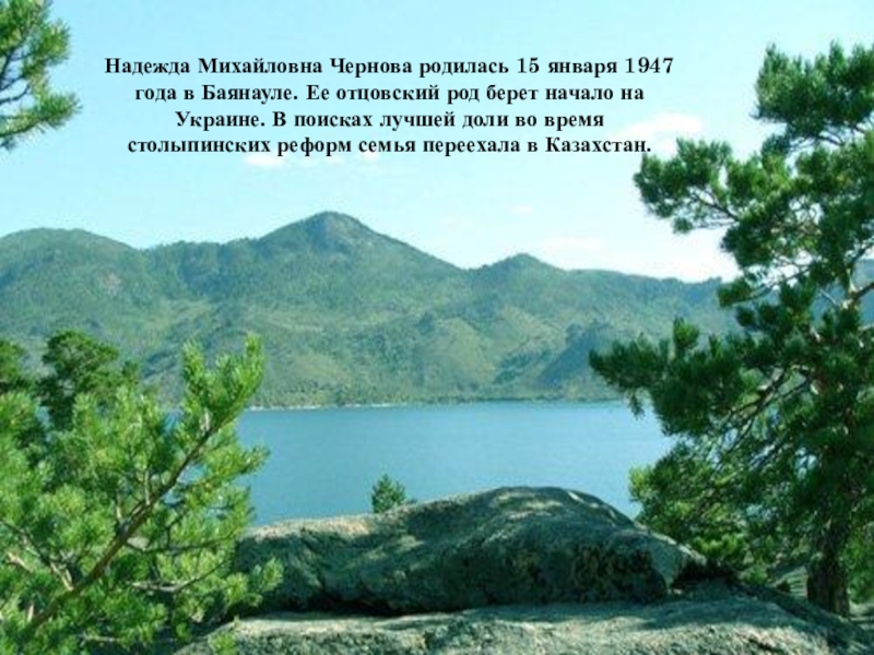 Надежда Михайловна Чернова родилась 15 января 1947 года в Баянауле. Ее