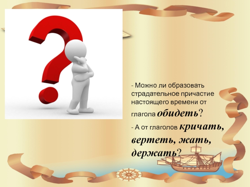 Слайд 10- Можно ли образовать страдательное причастие настоящего времени от глагола обидеть?