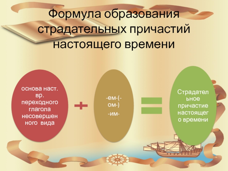Слайд 6Формула образования страдательных причастий настоящего времени
