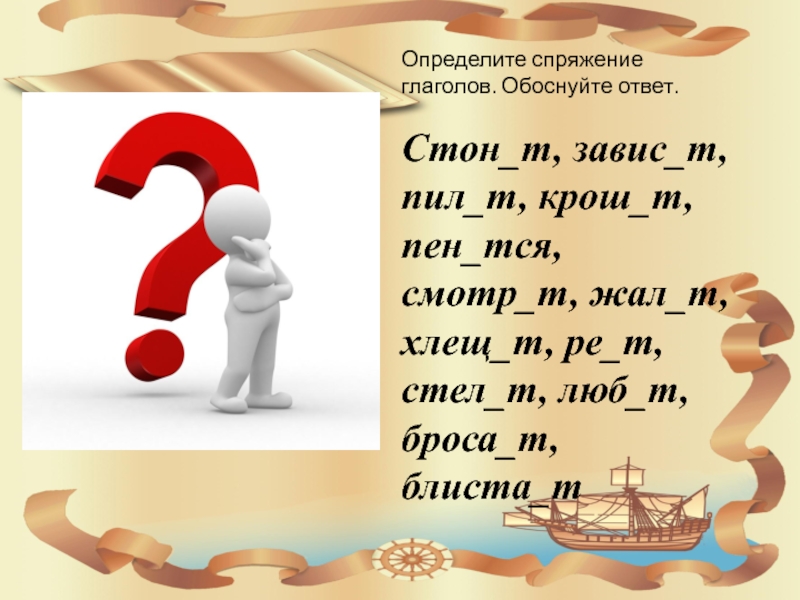 Слайд 3Определите спряжение глаголов. Обоснуйте ответ.