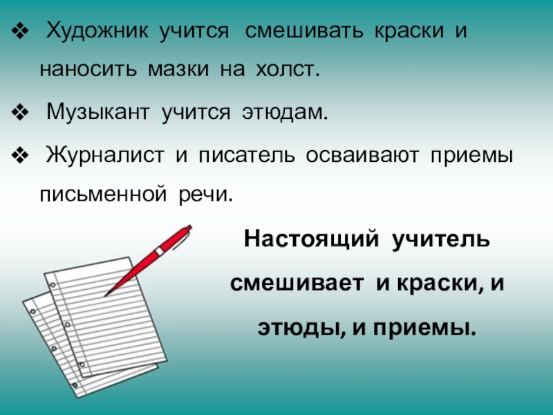 Настоящий учитель смешивает и краски, и этюды, и приемы.