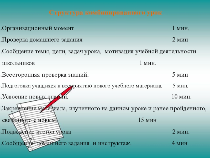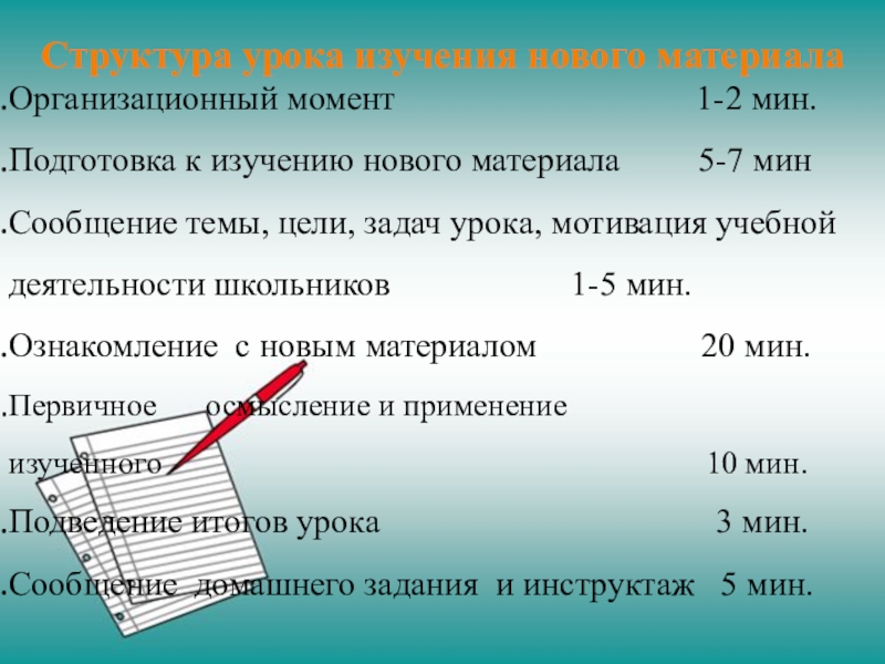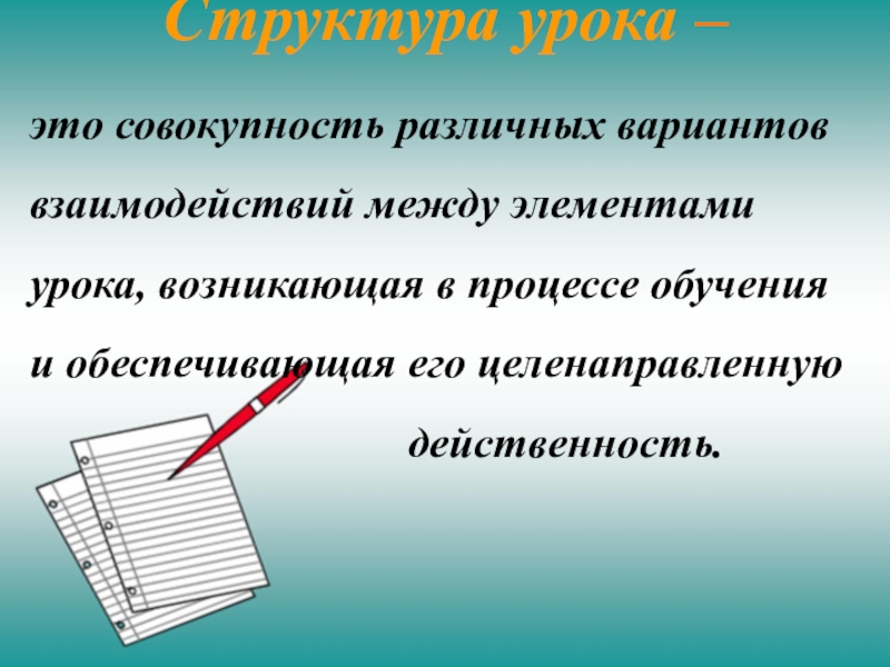 Урок с точки зрения логики процесса обучения, приводит нас к понятию «структура урока»
