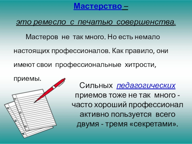 Сильных педагогических приемов тоже не так много - часто хороший профессионал активно пользуется всего двумя - тремя «секретами».