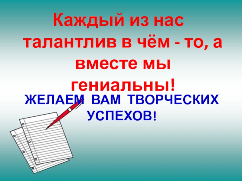 Это сайт презентаций, где можно хранить и обмениваться своими презентациями, докладами, проектами, шаблонами в формате PowerPoint с другими пользователями. Мы помогаем школьникам, студентам, учителям, преподавателям хранить и обмениваться учебными материалами.