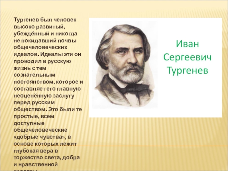 Слайд 6Тургенев был человек высоко развитый, убеждённый и никогда не покидавший почвы
