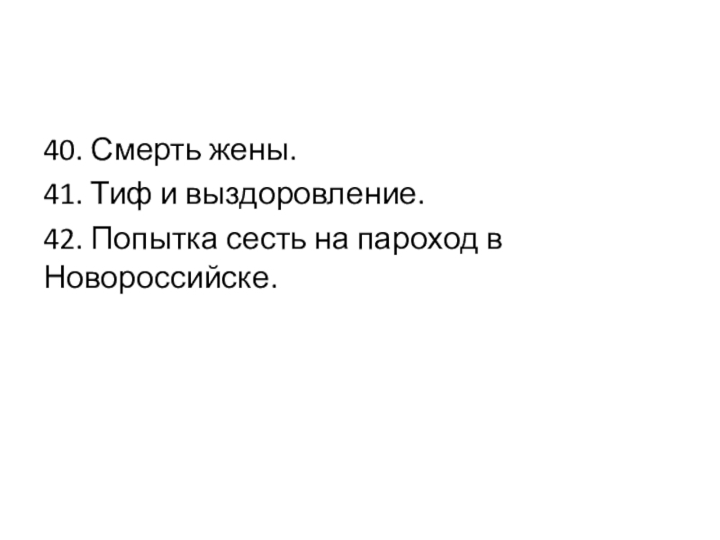 40. Смерть жены.41. Тиф и выздоровление.42. Попытка сесть на пароход в Новороссийске.