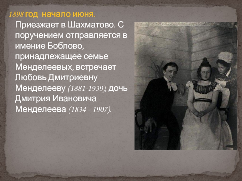 Слайд 161899 г. Лето в Шахматове и Боблове «проходит почти так же,