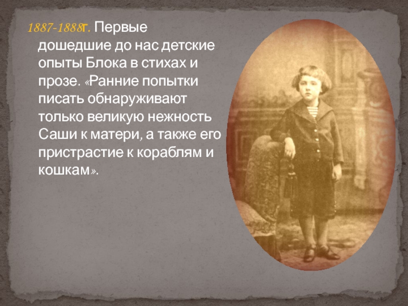 Слайд 51887-1888г. Первые дошедшие до нас детские опыты Блока в стихах и