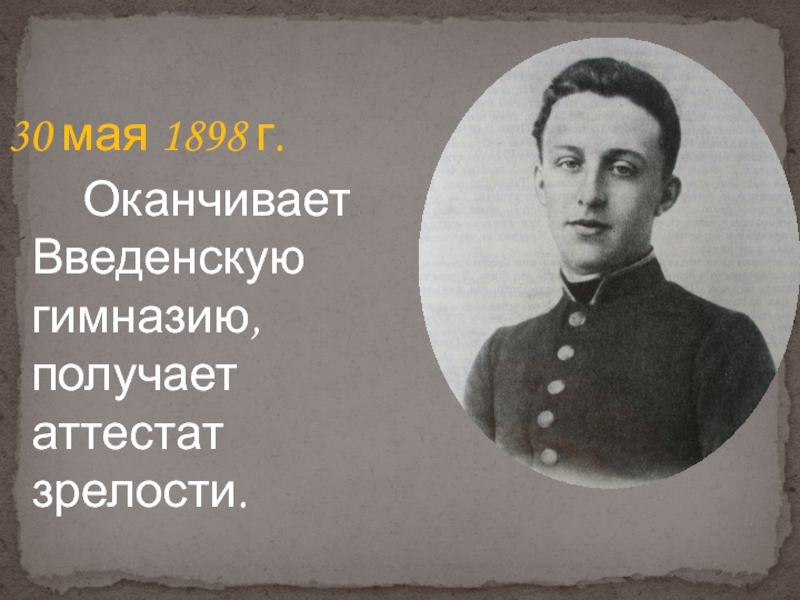 Оканчивает Введенскую гимназию,