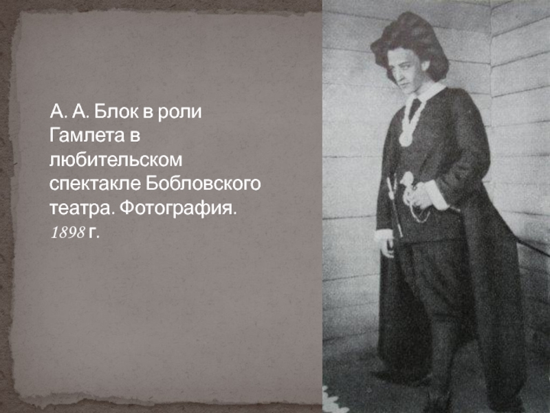 Слайд 14 А. А. Блок в роли Гамлета в любительском спектакле