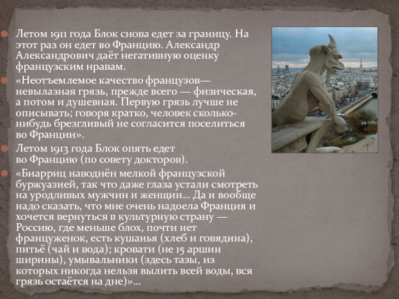 Слайд 29Летом 1911 года Блок снова едет за границу. На этот раз он едет во Францию.