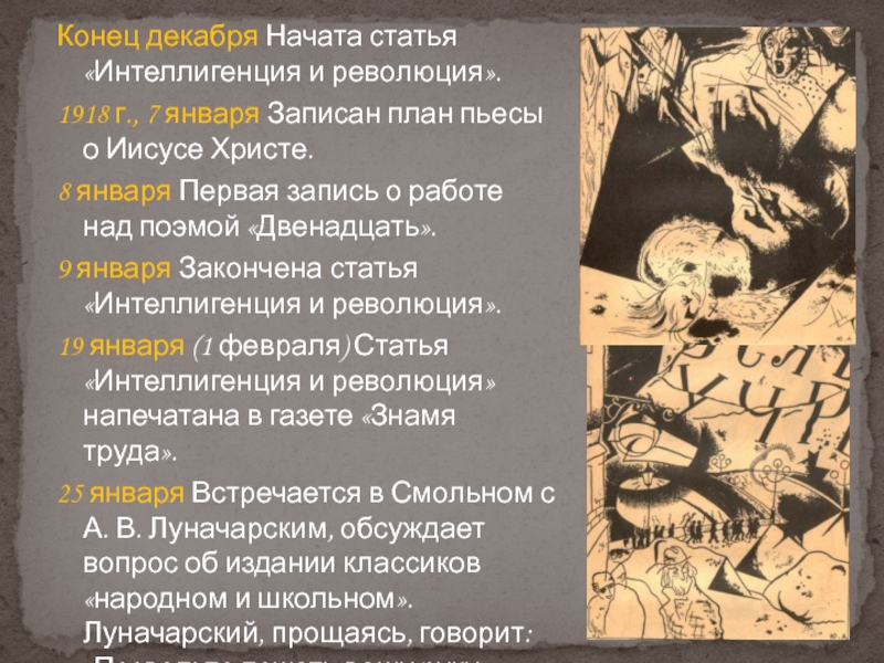 8 января Первая запись о работе над поэмой «Двенадцать».