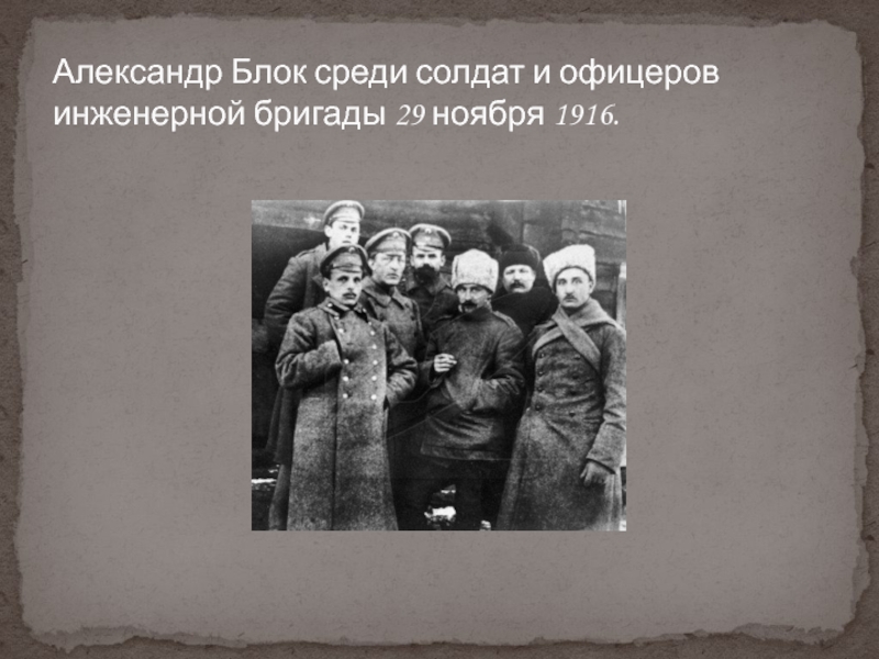 Слайд 32Александр Блок среди солдат и офицеров инженерной бригады 29 ноября 1916.