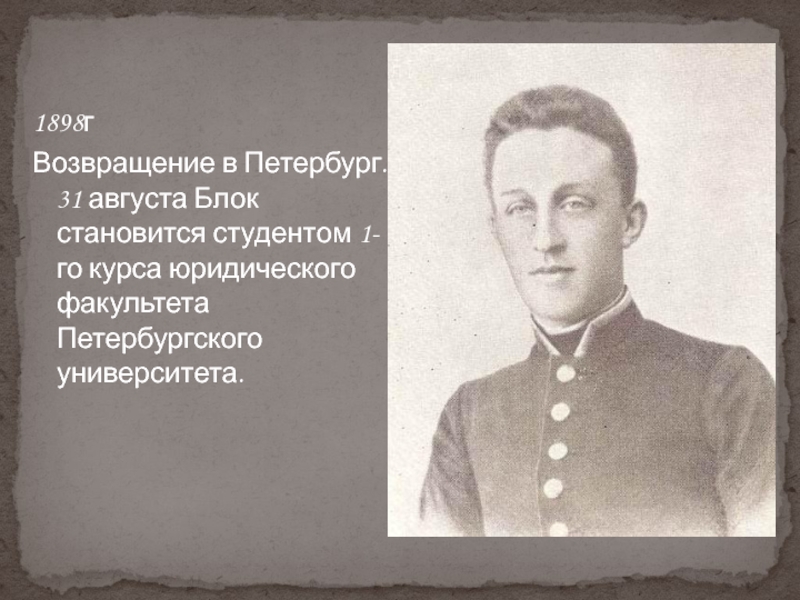 Возвращение в Петербург. 31 августа Блок становится студентом 1-го курса юридического