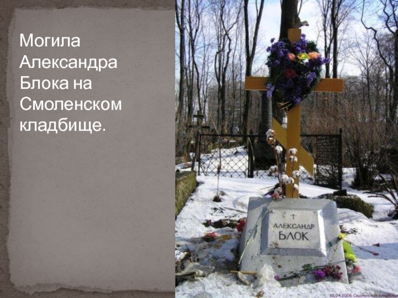 Слайд 43Могила Александра Блока на Смоленском кладбище.