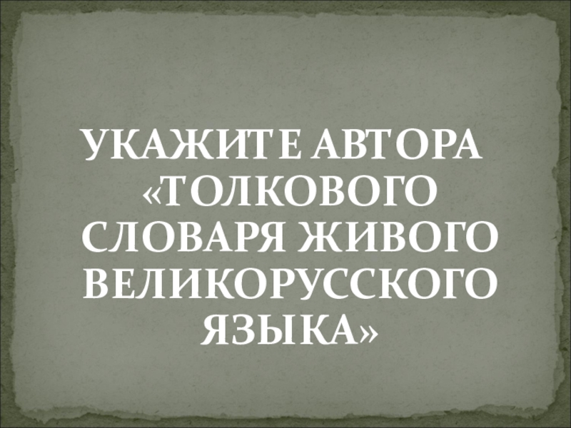 УКАЖИТЕ АВТОРА «ТОЛКОВОГО СЛОВАРЯ ЖИВОГО ВЕЛИКОРУССКОГО ЯЗЫКА»