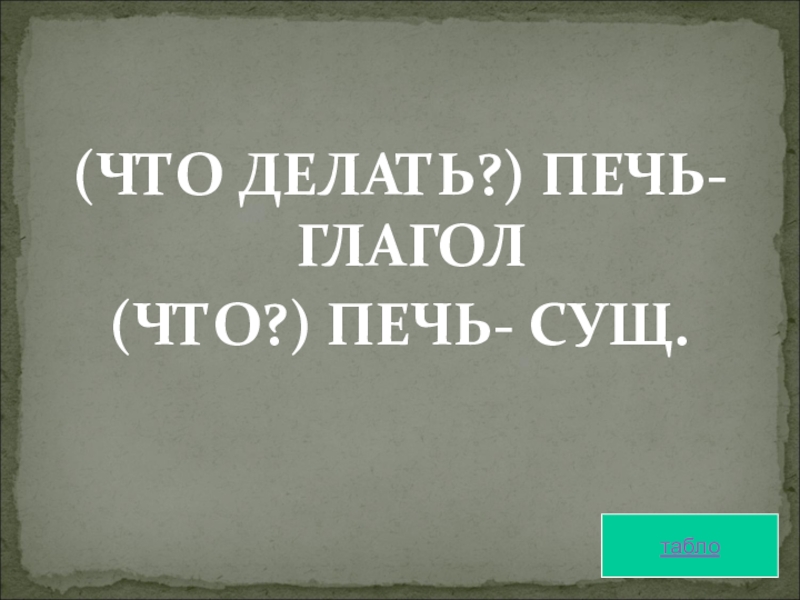 (ЧТО ДЕЛАТЬ?) ПЕЧЬ- ГЛАГОЛ(ЧТО?) ПЕЧЬ- СУЩ.табло