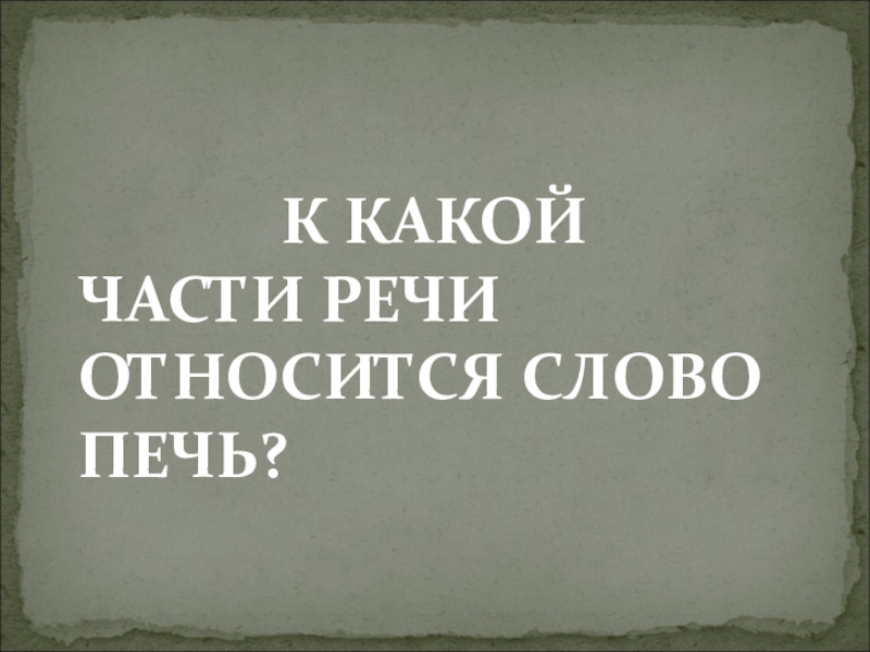 К КАКОЙ ЧАСТИ РЕЧИ ОТНОСИТСЯ СЛОВО ПЕЧЬ?
