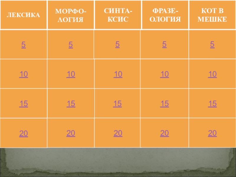 10152051015205101520510152051015205 ЛЕКСИКАМОРФО-ЛОГИЯСИНТА-КСИСФРАЗЕ-ОЛОГИЯКОТ ВМЕШКЕ