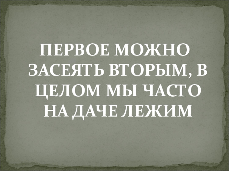 Слайд 29ПЕРВОЕ МОЖНО ЗАСЕЯТЬ ВТОРЫМ, В ЦЕЛОМ МЫ ЧАСТО НА ДАЧЕ ЛЕЖИМ