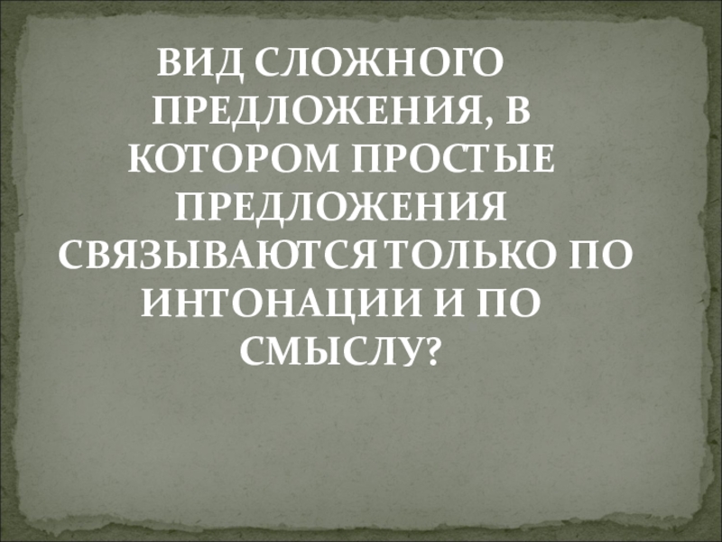 ВИД СЛОЖНОГО ПРЕДЛОЖЕНИЯ, В КОТОРОМ ПРОСТЫЕ ПРЕДЛОЖЕНИЯ СВЯЗЫВАЮТСЯ ТОЛЬКО ПО ИНТОНАЦИИ И ПО СМЫСЛУ?