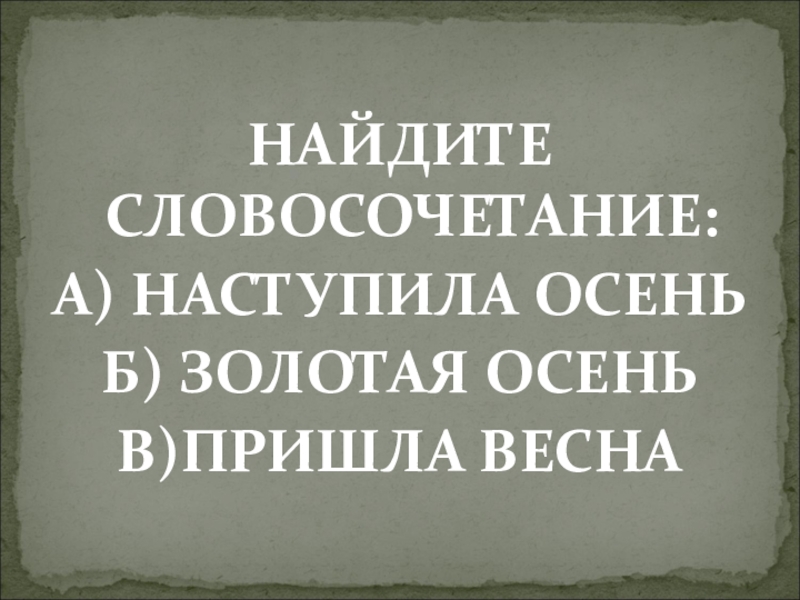 НАЙДИТЕ СЛОВОСОЧЕТАНИЕ:А) НАСТУПИЛА ОСЕНЬБ) ЗОЛОТАЯ ОСЕНЬВ)ПРИШЛА ВЕСНА