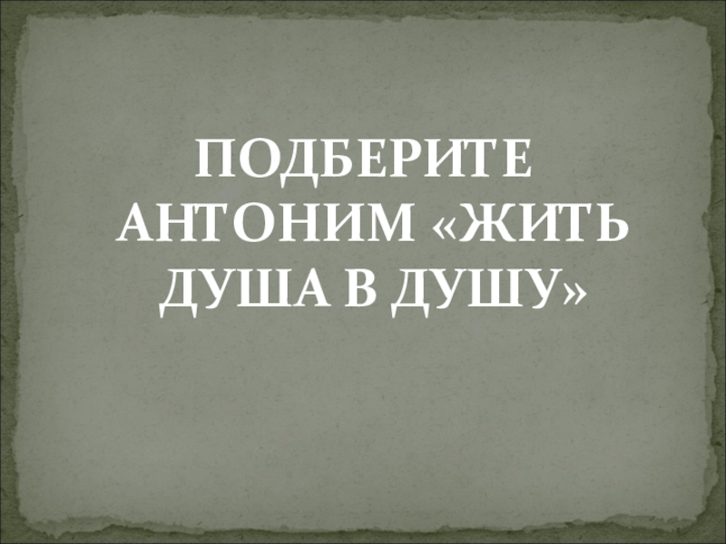 Слайд 33ПОДБЕРИТЕ АНТОНИМ «ЖИТЬ ДУША В ДУШУ»
