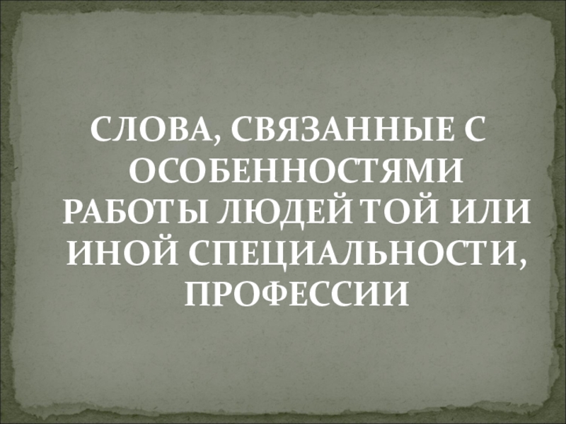 Слайд 9СЛОВА, СВЯЗАННЫЕ С ОСОБЕННОСТЯМИ РАБОТЫ ЛЮДЕЙ ТОЙ ИЛИ ИНОЙ СПЕЦИАЛЬНОСТИ, ПРОФЕССИИ