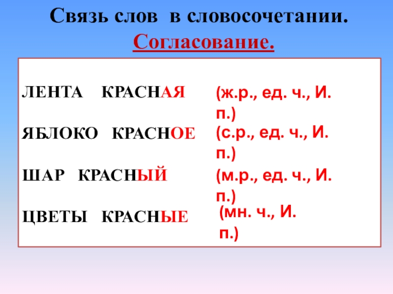 Связь слов в словосочетании.