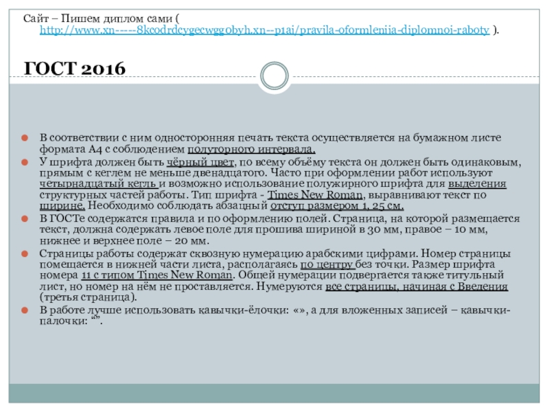 Слайд 10Сайт – Пишем диплом сами ( http://www.xn-----8kcodrdcygecwgg0byh.xn--p1ai/pravila-oformleniia-diplomnoi-raboty ).