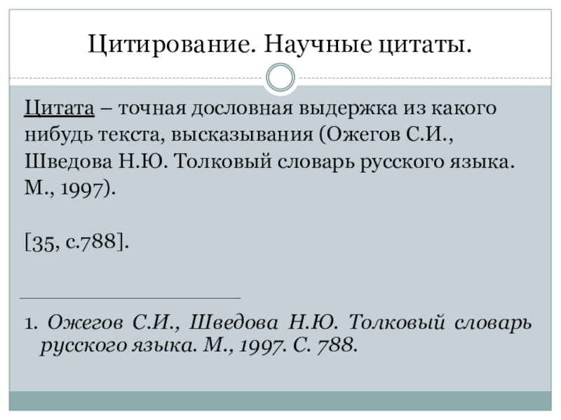 1. Ожегов С.И., Шведова Н.Ю. Толковый словарь русского языка. М., 1997. С. 788.
