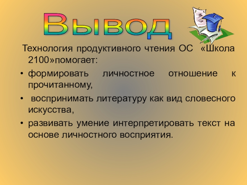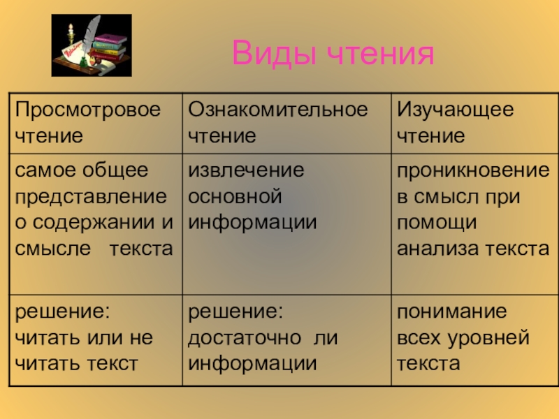 – изучающее (медленное, художественное) чтение. Результат: интерпретация текста