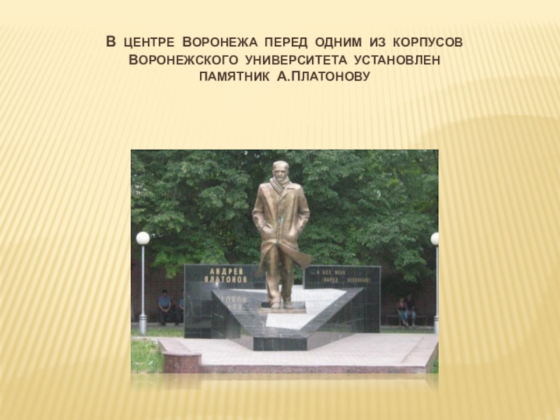 Слайд 5В центре Воронежа перед одним из корпусов Воронежского университета установлен памятник