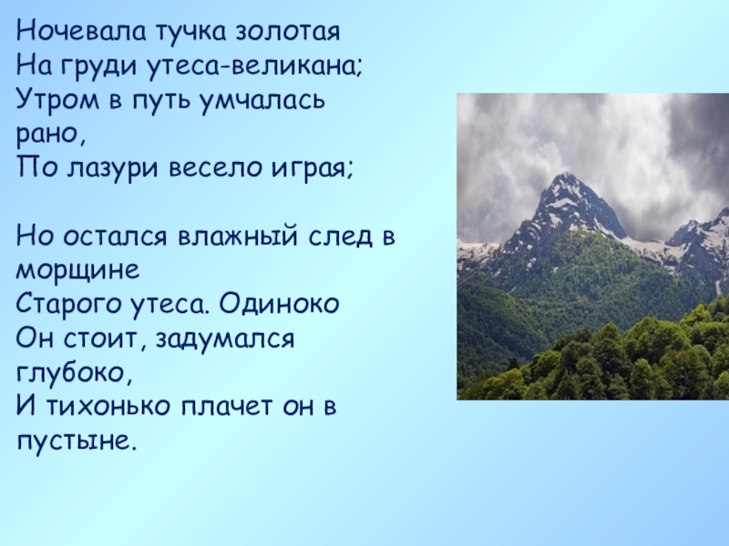 Слайд 15В “Утесе” Лермонтов рассказывает о непрочности человеческих отношений. Утёс страдает от