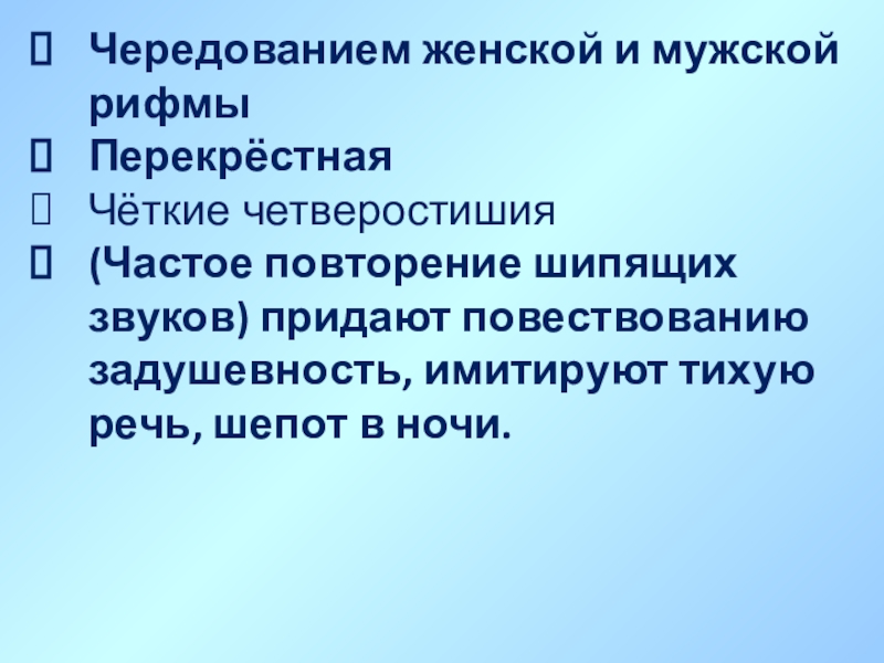 повествованию задушевность, имитируют тихую речь, шепот в ночи.