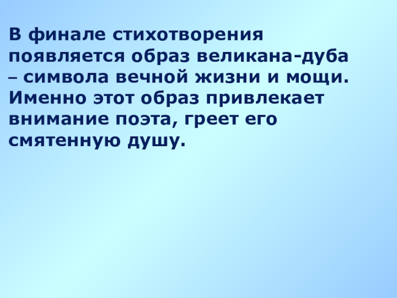 В финале стихотворения появляется образ великана-дуба – символа вечной жизни и