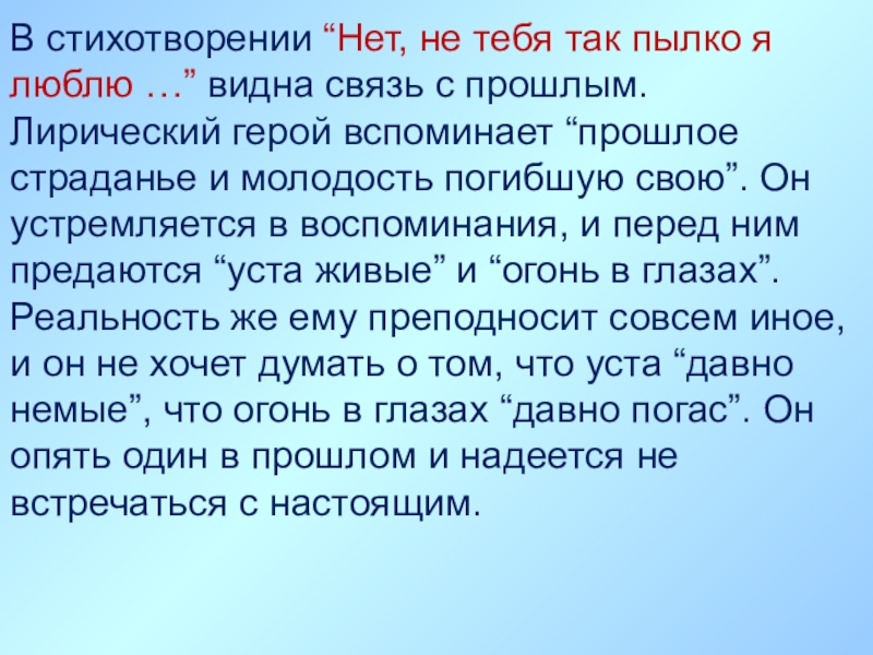 Слайд 11В стихотворении “Нет, не тебя так пылко я люблю …” видна