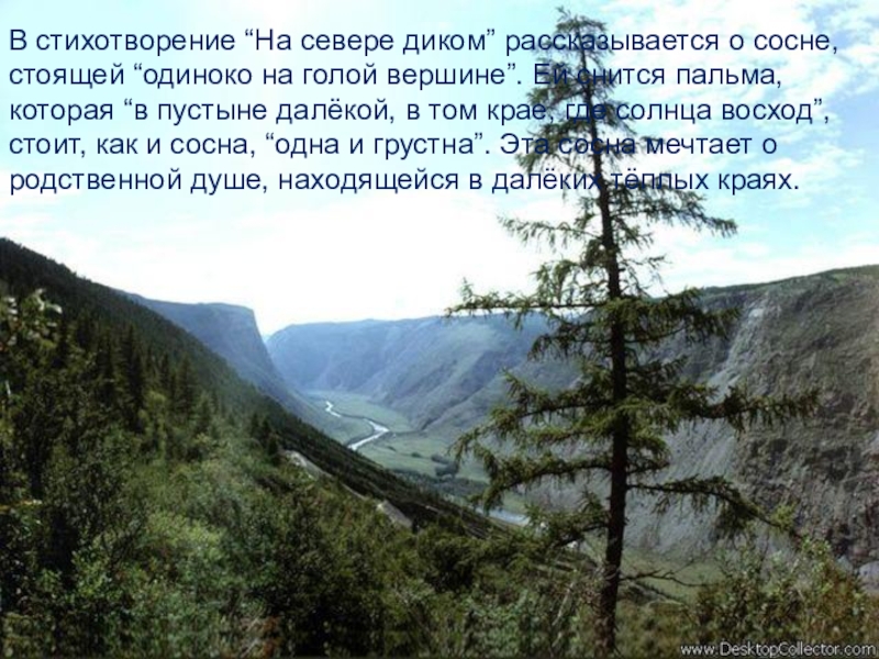 Слайд 17В стихотворение “На севере диком” рассказывается о сосне, стоящей “одиноко на