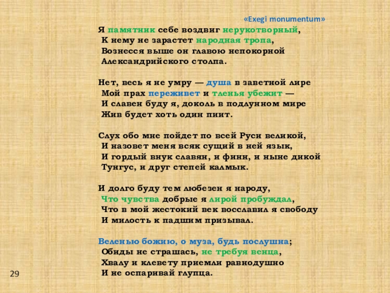 - Праведная жизнь - «чувства добрые я лирой пробуждал».