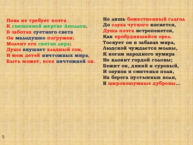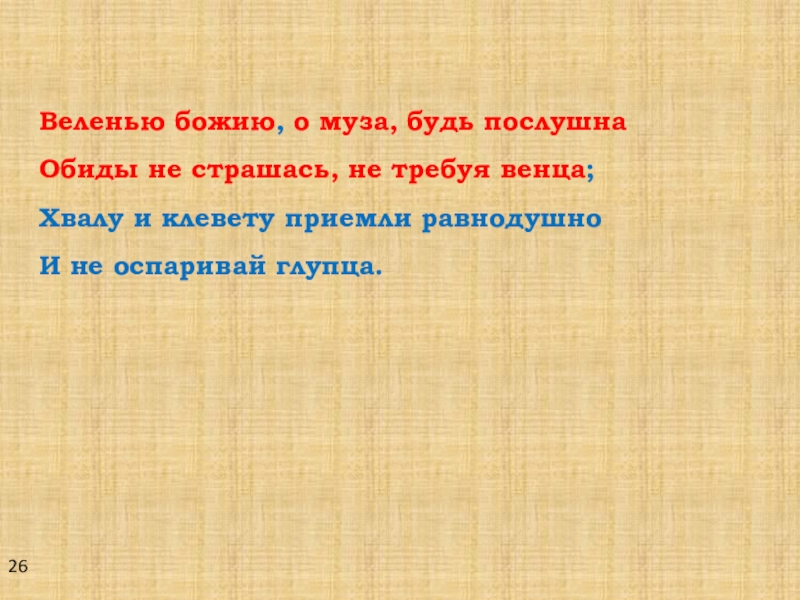 «Веленью Божию, о муза будь послушна» - подчинятся вдохновению, а не в угоду кому-то.