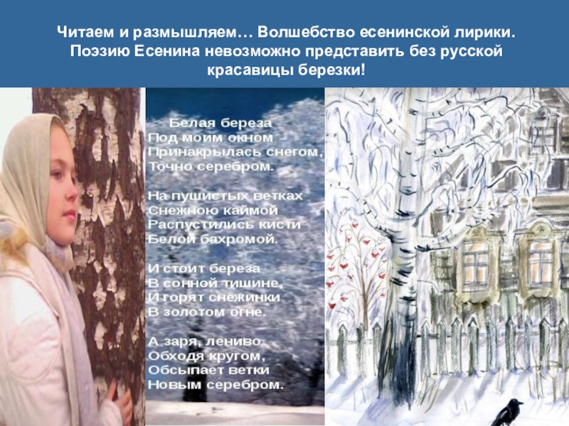 Слайд 2Читаем и размышляем… Волшебство есенинской лирики. Поэзию Есенина невозможно представить без