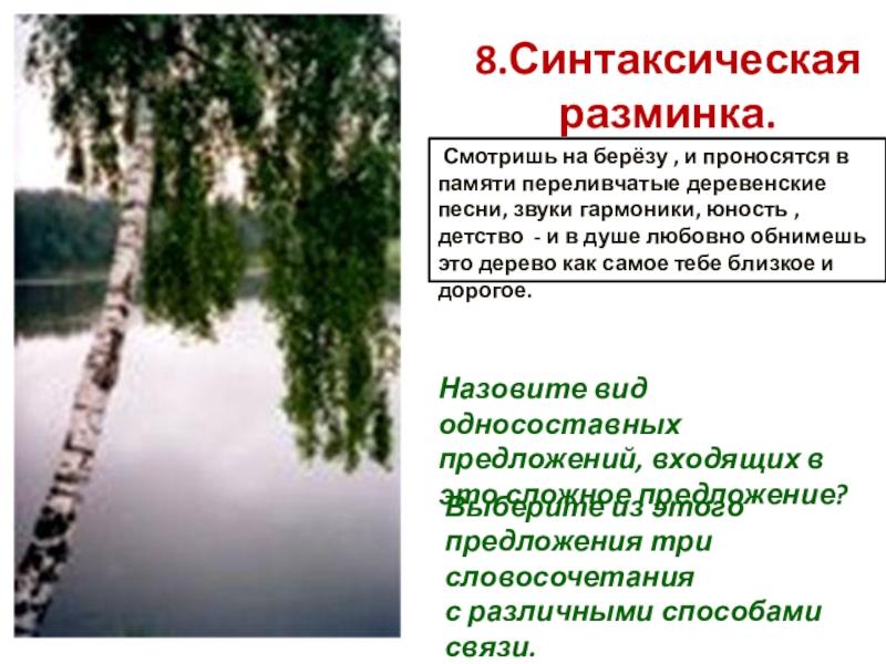 Риторические восклицания: Какое русское, какое милое дерево берёза! А молодые берёзки, тоненькие и пряменькие…