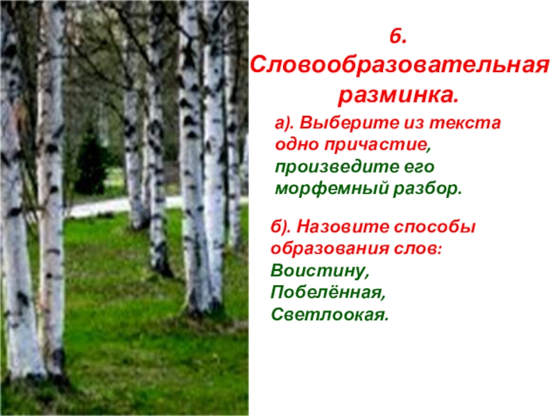 а). Выберите из текста одно причастие, произведите его морфемный разбор.