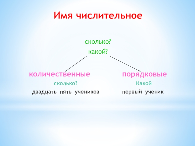 Имя числительноесколько?какой?количественные       порядковые   сколько?