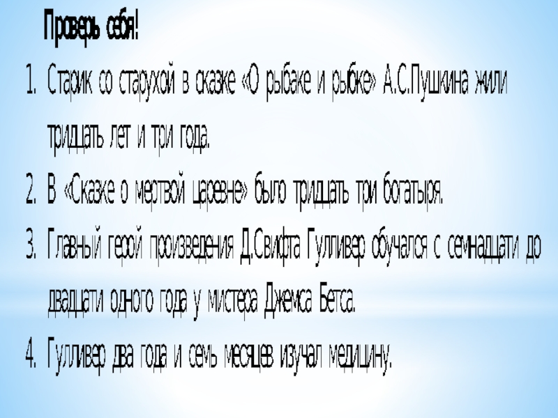 Задание 1.  «Кто первый?»Прочитайте и ответьте письменно на вопросы, записывая цифры словами.  Сколько лет жили старик