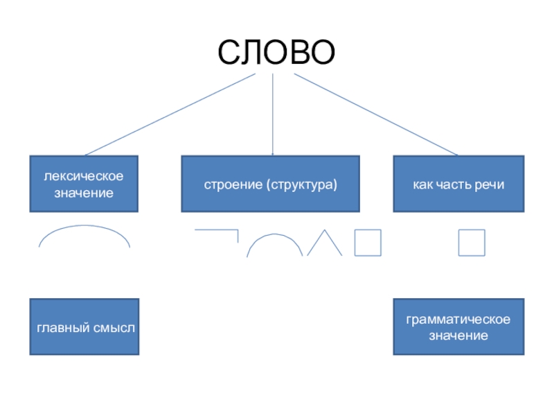 СЛОВОлексическое значениестроение (структура)как часть речиглавный смыслграмматическое значение