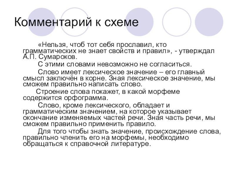 Комментарий к схеме      «Нельзя, чтоб тот себя прославил, кто грамматических не знает