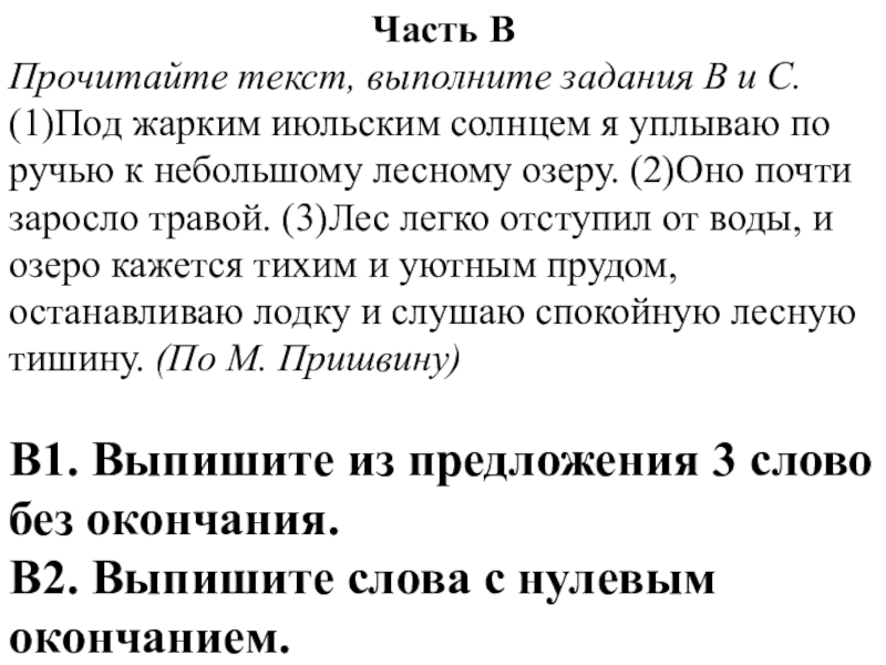 Часть ВПрочитайте текст, выполните задания В и С.(1)Под жарким июльским солнцем я уплываю по ручью к небольшому