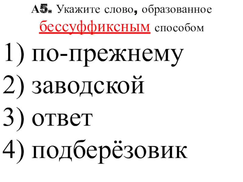 Слайд 6А5. Укажите слово, образованное бессуффиксным способом